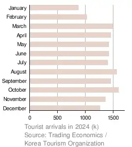 - ^ "Home>Tourism Statistics > key facts on tourism > Korea, Monthly Statistics of Tourism". Korea Tourism Organization.