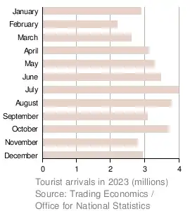 - ^ "UK: International tourist trips". Our World In Data. August 17, 2024.