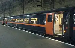 As with Mark 3A vehicles, Mark 4 Open Standards carry the TSO designation.[1] Further sub divisions exist: TSOE Open Standard (End) and TSOD Open Standard (Disabled Access). The TSOE vehicles are specifically designed to be adjacent to the train locomotive and were built with a single corridor connection at one end only. The other end of the coach has no corridor connection, just a small window and fixed taillights, although the structural arrangements to allow a corridor connection to be added if required at a later date are present. Mark 4 TSO vehicles are numbered in the 12200-12232 (TSOE), 12300-12331 (TSOD) and 12400-12538 (TSO) ranges.