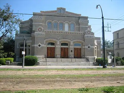 The sanctuary building on St. Charles Avenue in Uptown New Orleans was designed by Emile Weil, aged 29 years, and George Glover in the Byzantine Revival style, with a 71-foot-wide (22 m) dome. The synagogue was constructed in 1908 and dedicated 1 January 1909.[1][2]