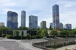 Built in 1976 at the outskirts of La Défense business district, the Tours Aillaud are named after their main architect, Emile Aillaud.[2] The housing project represents 18 towers including 1,607 apartments all together. The tallest of those are the Tours 1 and 2 with 39 floors and a height of 105 meters. The Tours 3 to 10 have 20 floors and the Tours 11 to 18 have 13 floors.