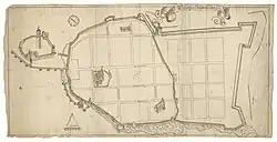![]() Vyborg Castle with Tower of St. Olav in the city map of Vyborg (1642) | |