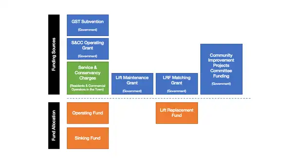 Apart from the service and conservancy charges (S&CC) that are paid by the residents and commercial operators of the town, a town council is also able to tap on numerous grants that the government provides.