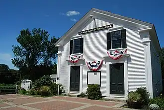 The Old Town Hall of Lakeville, Massachusetts, is located at 2 Precinct Street. Built in 1856, it is an excellent example of a 19th-century Greek Revival town hall. The building originally housed town offices as well as hosting town meetings; it is now used primarily for the latter function.[2] The hall was listed on the National Register of Historic Places in 1976.[1]