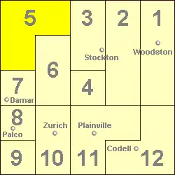Rooks County was established with four townships: Bow Creek, Lowell, Paradise and Stockton. That number increased to seven by 1878[2] and twenty three in 1925. The twenty three townships were in place until 1971 when the number was reduced to the current twelve townships.[3]