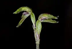 Townsonia, commonly called myrtle beech orchids is a genus of two species of flowering plants from the orchid family, Orchidaceae. They form small clusters of plants with their tubers connected, each tuber with one or two leaves. The flowers are inconspicuous.