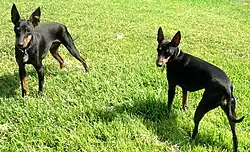 In England, the very similar English Toy Terrier (Black & Tan) has also declined, to the point where it is listed by the Kennel Club as being in danger of extinction.[4] In order to rescue the breed, the Kennel Club has opened the stud book to allow certain selected examples of the North American Toy Manchester Terrier to be registered and bred as an English Toy Terrier (Black & Tan). However, the two breeds are not considered to be identical, and the standards for the two breeds show different requirements.