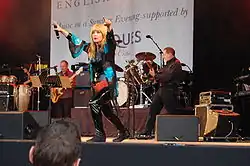 In June 2008, Willcox appeared on Living with the Dead on Living TV to share her experiences of living in her haunted home.[45] In July 2008, Willcox appeared on UK ITV1's This Morning to discuss her role as a vampire in the rock musical Vampires Rock.[46] She has also appeared in shows looking back on popular culture, including the I'm a Celebrity series, and various 'Top 100 favourite' shows. Willcox played Queen Ivannah in Snow White and the Seven Dwarfs at the Lyceum in Sheffield for the 2009 Christmas season.[47] In October 2009, she made a guest appearance in the BBC drama series Casualty.[48] She also played the widow Fantine in Focus on the Family radio theatre's version of Les Misérables. In 2009, a new version of Vampires Rock was created, called Vampires Rock Christmas, and Willcox was back in her role as the Killer Queen, alongside the writer and one of the stars of the show, Steve Steinman.[49] Willcox continued to perform with The Humans, featuring Bill Reiflin, Chris Wong and occasionally husband Robert Fripp. Described as "European experimental meets West Coast American grunge", the Humans recorded their debut studio album We Are the Humans in Seattle in 2008, released in Estonia in May 2009 to coincide with the band's return to play in front of the country's president.[50] The album received a UK digital release in September 2009, along with a single "These Boots Are Made for Walkin'".[1] At the end of the year Willcox came seventh in a BBC series naming the "Queens of British Pop", as voted for by the British public. In 2010 Willcox with the Humans performed at the London's Roundhouse Haiti earthquake fundraiser concert.[51]