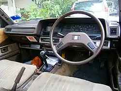 February 1982 saw the introduction of the Toyota 1C diesel engine installed in the Corolla sedan.[5] This car was exclusive to the Toyota Diesel Store to encourage sales at the largely commercial truck retailer for Toyota in Japan, alongside the larger, diesel-engined Toyota Vista. Three months later, the van was no longer available with the 1.6-litre petrol engine, but the five-door KE73G wagon was introduced as the first Corolla Wagon to be sold in Japan (rather than the "van" commercial car).[6] In May 1983, the roof of the van/wagon was raised to 45 mm, this model was exported elsewhere. The van/wagon received another minor update in August 1985 and continued to be offered until August 1987, skipping the first front-wheel-drive generation of Corollas. After the introduction of the front-wheel drive E80-series Corolla, the Van range received a facelift and a new set of chassis codes (KE72V, KE74V, CE71V).
