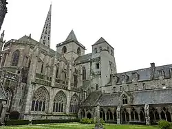 Tréguier Cathedral (French: Cathédrale Saint-Tugdual de Tréguier) is a Roman Catholic church and former cathedral in Tréguier, Côtes-d'Armor, France. It is dedicated to Saint Tudwal. The church was formerly the seat of the Bishopric of Tréguier, abolished under the Concordat of 1801, when its territories were divided between the Diocese of Quimper and the Diocese of Saint-Brieuc, known since 1852 as Saint-Brieuc-Tréguier.