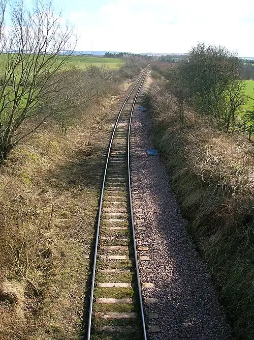 The line at the station site is still operational (2017), serving the Killoch Washery to the south-east, beyond Drongan.