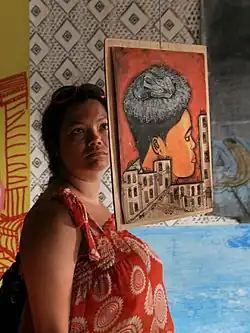 ![]() In December 2010, at salon urbain de Douala, looking at an artwork of Boris Nzebo. | |