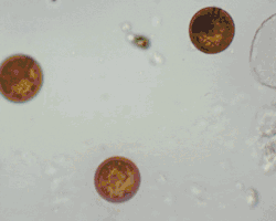 Trachelomonas cervicula is a species of algae that can be found in abundance in fresh water ponds. Its smooth lorica is orange and yellow in colour and almost spherical. It has an anterior, round opening with a thickened, slightly projecting external border. Internally the orifice is a straight projecting external border, and produced internally as a straight, cylindrical, chitinous tube about one-third as long as the diameter of the lorica. This diameter of the lorica is 22–23 μm,[1] 18–23 μm long,[3] and 16–21 μm wide.[3] The flagellum is about 1.5 to 2 times longer than the cell. The cell contains multiple, plate-like chloroplasts which lack pyrenoids.[4]