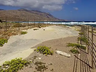 The Trachilos footprints are possibly tetrapod footprints from the late Miocene on the western Crete, close to the village of Trachilos, west of Kissamos, in the Chania Prefecture.[1] Some researchers described the tracks as representing at least one apparent bipedal[1] hominin or an unknown primate. The stratum in which the footprints were found was dated to about 5.7 million years ago, which predates the previously earliest discovered hominin footprints by about two million years. Later studies show that the footprints might be more than 6 million years old.[2] The researchers of the tracks suggest that it may imply the possibility of early hominin presence outside of Africa.[1] However, there is no consensus that these impressions are distinct enough to confidently assign to a primate or even a vertebrate, or that they are indeed footprints at all.[3]
