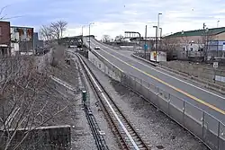 In 1997, the Surface Transportation Board permitted CSX to abandon Track 61 past Summer Street for about three years for the construction of the South Boston Interchange (I-90 exit 25).[11] This abandonment was later extended to 2003, and then until 2005.[12] In 2006, CSX evicted Boston Railway Terminal Corporation, which had handled much of the Big Dig traffic but then primarily served cars for the remains of the East First Street track, from use of the line. The main section of the line had been rebuilt from Pumphouse Road to the Summer Street underpass as part of the South Boston Interchange project, including a new viaduct carrying D Street over the tracks. However, after BRT's eviction, CSX declined to pursue further freight service on the line.