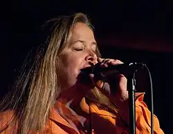 In July 2015, Nelson sang at an "all-star" concert in Nashville, organized by the Country Music Hall of Fame and Museum, to celebrate the Dylan, Cash, and the Nashville Cats: A New Music City exhibition and compilation-album release.[18] She also wrote the introduction in the album booklet, outlining the shared influence between country and rock music over the 1960s and 1970s.[19] On October 2, 2016, Nelson sang with Mariachi Mestizo at Hardly Strictly Bluegrass in San Francisco.[20][21] From 2016 into 2018, Nelson performed intermittently with Missouri band the Bel Airs.[22][23][24][25] Since 2018 Nelson has occasionally performed with Corky Siegel's Chamber Blues, of Chicago, as of 2021.[26][27][28]