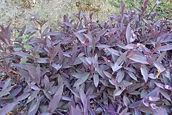 T. pallida is grown as an ornamental plant for its attractive foliage.[2] Only the cultivar 'Purpurea', featuring purple-violet leaves and stems,[5] is commercially grown.[4] 'Purpurea' is sometimes sold under the name 'Purple Heart',[5] and has gained the Royal Horticultural Society's Award of Garden Merit.[6]