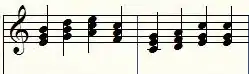 The "target chord" concept is applied equally to homomphonic parallelism and its various iterations as it is to polyphony. These vertical combinations by means of their strict repetition serve as an organizing structure to the improvised nature of the harmonic motions.