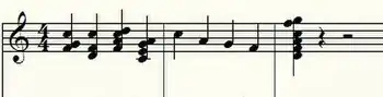 Through the use of parallelism cadential patterns are inevitable. O.O. Bateye clarifies: "The subdominant (plagal) cadence is (resulting from the frequent tendency toward parallelism in African music) the favored cadence and not the perfect cadence, which is the norm in classical western music...Cadential patterns are frequent in African music and invariably result as a consequence of melodic movement either by thirds, fourths, or fifths – that is as a consequence of what may be referred to as shadow harmony ... A cadential descending minor third is frequently noted between the minor third step and the tonic (Reiser, 1982:122) in African music."[9] These cadential movements are made using the melody and the scale as the guiding factor.