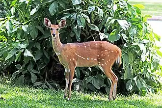 Harnessed bushbuck | Tragelaphus scriptus | distributed from Senegal and southern Mauritania across the Sahel, east to Ethiopia, and south to Angola and the southern Democratic Republic of the Congo. |