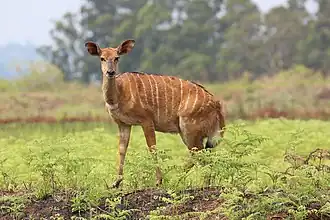 Lowland nyala or Nyala | Tragelaphus angasii | Eswatini, Malawi, Mozambique, South Africa, Zambia, and Zimbabwe. |