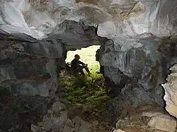 The Trail Creek Caves are a group of twelve caves found within the Bering Land Bridge National Preserve on the Seward Peninsula of the U.S. state of Alaska. This is a significant archeological site due to the discovery of several artifacts of ancient hunters. These included stone tools and bone fragments dated to 8,500 years or earlier. The caves were discovered in 1928 by Taylor Moto and Alfred Karmun, locals from Deering, Alaska. Geologist David Hopkins tested the site in 1948. This location was first excavated in from 1949-1950 by Danish archeologist Helge Larsen.[1] The caves are located along Trail Creek 65°47′28″N 163°24′58″W / 65.79111°N 163.41611°W near its mouth at Cottonwood Creek[2] in the Northwest Arctic Borough.[3]