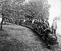 One of the earliest manufacturers of train rides were the Cagney Brothers, who began making miniature steam locomotives in 1894.[1] They incorporated the Miniature Railway Company in 1898.[1][2]