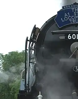 A train whistle or air whistle (originally referred to as a train trumpet or air trumpet) is an audible signaling device on a steam or gas locomotive, used to warn that the train is approaching, and to communicate with rail workers. Modern diesel and electric locomotives primarily use a powerful air horn instead of a whistle as an audible warning device. However, the word whistle continues to be used by railroaders in referring to such signaling practices as "whistling off" (sounding the horn when a train gets underway).