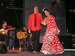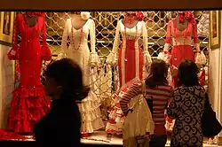 The traje de flamenca ("flamenco outfit") or traje de gitana[1] ("Gitana outfit") is the dress traditionally worn by women at Ferias (festivals) in Andalusia, Spain. There are two forms: one worn by dancers and the other worn as a day dress.