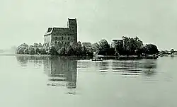 Trakai Island Castle (Lithuanian: Trakų salos pilis) is an island castle located in Trakai, Lithuania, on an island in Lake Galvė. The construction of the stone castle was begun in the 14th century by Kęstutis, and around 1409 major works were completed by his son Vytautas the Great, who died in this castle in 1430. Trakai was one of the main centers of the Grand Duchy of Lithuania and the castle held great strategic importance. The castle was rebuilt in the 1950s–1960s by Lithuanian initiative, although it had received resistance from Soviet authorities. The Trakai History Museum was established after the reconstruction.[3]