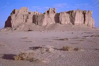 The Trakhun (Pashto: تراخون, Balochi: قلعه ترقون) or Trakhu is a historical, archaeological site with high-walled fortress atop a 30 m high triangular rock formation over 100 m on each side, located in the center of the Rud-i Biyaban in Nimroz Province of the Sistan region.[1] By legends and local tradition, Tarakhun is credited to be the birthplace of Rustam.[2]