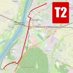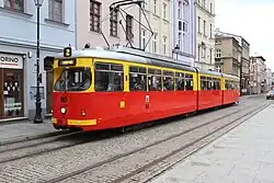 The Grudziądz tram system is a tram system in Grudziądz, Poland that has been in operation since 1896. Currently, the system is operated by Miejski Zakład Komunikacji w Grudziądzu (MZK Grudziądz). There is a single 9 kilometres (5.6 mi) line in regular operation. Grudziądz is the smallest city in Poland to have a independent tram system.[1] The tram line underwent modernization in 2021[2] and four Moderus Beta low-floor trams were supplied in 2022.[3]