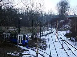 Due to the lack of funding, very little was actually achieved. Between 1974 and 1990, only a single metro station was finished under the railway station.[2] In 1984, the first network extension to the north took place - the tracks reached the new XXX-Lecia district (currently Krowodrza Górka). Despite the crisis, the authorities decided to close down the tracks to Dworzec Główny Wschód (Railway Station East) as a preparation for the next part of the metro construction. The new balloon loop in Krowodrza Górka was also prepared for the further network extensions, but the actual works never started.