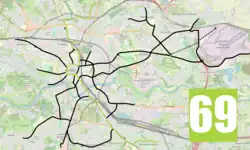 Today, the tram network consists of 90 kilometres (56 mi) of double track. Since the network is designed to be operated by single-ended trams, it has balloon loops at nearly all termini. There are currently 24 balloon loops in Kraków.