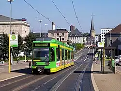 The Mülheim/Oberhausen tramway network is a network of tramways forming part of the public transport system focused on Mülheim an der Ruhr and Oberhausen, two cities in the federal state of North Rhine-Westphalia, Germany.