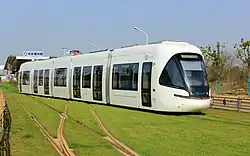Trams in Wuhan may refer to any one of the tram systems currently operational in the city of Wuhan, Hubei, China. The first tram started revenue service in Wuhan is the Auto-city T1 Line, which began on July 28, 2017.[1] Subsequently, Optics Valley tram started revenue service from April 1, 2018.[2]