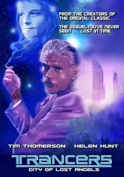 Trancers: City of Lost Angels (also known as Trancers 1.5) is a short science fiction film that was released on DVD in 2013 and later a bonus addition for other releases of the original Trancers on Blu-ray. It consists of approximately 20 minutes of footage lifted from the unreleased 1988 anthology film, Pulse Pounders, which also featured two other segments. It stars Tim Thomerson who reprises his role as the time journeying cop, Jack Deth, from 1985's Trancers.[1] The short is marketed as a digitally restored lost sequel. The short takes place between Trancers and Trancers II.