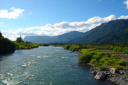 The Trancura River (also known as Pucón River or Minetúe River)[1] is a river located in the La Araucanía Region of Chile. Its headwaters drain the southeasternmost portion of Villarrica National Park, including the northwestern slope of Lanín volcano. The river flows initially to the north and from its junction with its main tributary, the Maichín River, the Trancura turns in a westerly direction until emptying into the Villarrica Lake, after having received the waters of Caburgua Lake through the Carrileufú River. This latter river emerges at the Ojos del Caburgua and is fed by the Liucura River, which further has as a tributary the outflow stream of Tinquilco Lake.