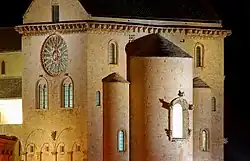 Trani Cathedral (Italian: Cattedrale di Trani; Basilica cattedrale di Santa Maria Assunta; Cattedrale di San Nicola Pellegrino) is a Roman Catholic cathedral dedicated to Saint Nicholas the Pilgrim in Trani, Apulia, south-eastern Italy. Formerly the seat of the archbishop of Trani, it is now that of the archbishop of Trani-Barletta-Bisceglie. Consecrated in 1143, is one of the main examples of Apulian Romanesque architecture.
