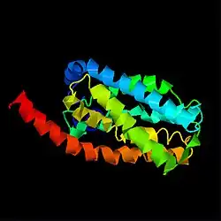 Trans-Golgi network vesicle protein 23 A (TVP23A) is a protein coded for the TVP23A gene, formerly known as FAM18A.[5] TVP23A is located on chromosome 16.[6] It is known to have human paralogs, TVP23B and TVP23C, as well as orthologs in many different species, notably yeast, mice, and chickens.[7] The general consensus on the TVP23A protein indicate that it has some function in the late Golgi apparatus and is involved in retrograde transport from endosomes back into the Golgi apparatus. The nature of this transport is still unknown.[8]