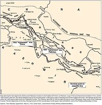 1. ^ Trivei, Abishek (8 July 2019). "Why the 1963 Sino-Pakistan Boundary Agreement Is Unlawful in Light of the Recent ICJ Advisory Opinion on the Chagos Archipelago, 2019". www.jurist.org. Retrieved 2021-11-07.