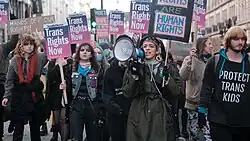 The current legal framework for trans rights includes protections under the Equality Act 2010, which prohibits discrimination on the basis of gender reassignment. Despite these protections, concerns have been raised by human rights organisations, medical professionals, and advocacy groups about the adequacy of access to gender-affirming healthcare, long NHS waiting times, and the social and political climate surrounding trans rights.[4] The topic has become increasingly prominent in public discourse, with growing visibility of trans people, media coverage, and policy debates shaping the landscape of rights and recognition in recent years.