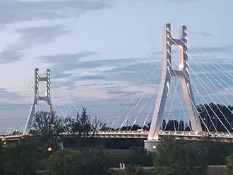 The Transilvania Bridge in Satu Mare, is a road, pedestrian, and cycling cable-stayed bridge over the Someș River, connecting Independenței Boulevard – Micro 17 neighborhood on the left bank and Henri Coandă Boulevard on the right bank, and overlapping Strandului Street. It is the largest infrastructure project of the city since the 1990s and one of the longest cable stayed bridge in Romania. Inaugurated on 30 May 2025, the bridge is a unique construction in north-western Romania.