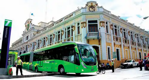 Transmetro is a bus rapid transit system in Guatemala City, Guatemala. The first line opened on 3 February 2007. The fleet consists of modern Volvo buses made by Ciferal in Brazil. The buses have fixed stops and partly run on dedicated lanes, avoiding other traffic. Both stops and vehicles are guarded by municipal police. Service began in 2007 with a route between the City Hall (Municipalidad) and a market place at Centra Sur (Southern Transfer Station). The second route, Eje Central, started operations on August 14, 2010. This route serves the central corridor between 6th and 7th Avenue of Zones 1, 4, and 9.