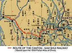 Canton–Sam Shui Railway, built from 1902 to 1904, was the first railway line in Guangdong.