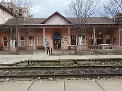 Pristina effectively has two train stations: Pristina railway station lies west of the center near the end of Str. Garibaldi, while Fushë Kosovë railway station is Kosovo's main railway hub.[22] Pristina is served by one daily train to Skopje. The train picks up passengers at 7:10 AM at Pristina station, located in the industrial section of Pristina, immediately down the hill from the Dragodan neighborhood on Tirana Blvd.[23] A journey to Skopje takes just under 3 hours.[23]