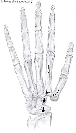- ^ Gangopadhyay S, McKenna H, Burke FD, Davis TR (March 2012). "Five- to 18-year follow-up for treatment of trapeziometacarpal osteoarthritis: a prospective comparison of excision, tendon interposition, and ligament reconstruction and tendon interposition". J Hand Surg Am. 37 (3): 411–7. doi:10.1016/j.jhsa.2011.11.027. PMID 22305824.