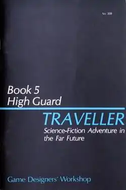 In 1980, Games Designer Workshop published High Guard, the fifth Traveller book. In its 52 pages, it outlines character and skill generation for Space Navy personnel, and details on how to construct large starships of up to a million tons.[1]