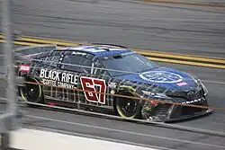On January 13, 2023, NASCAR Cup Series team 23XI Racing tweeted a video teaser announcing that they would field a part-time third car in the 2023 Daytona 500. In it, the driver of it is facing away from the camera and wearing a hat.[50] After a Twitter user found an image of Pastrana wearing the exact same hat,[51] Jordan Bianchi from The Athletic reported that Pastrana would be the driver of the car.[52] On January 17, it was officially announced that Pastrana would attempt to make the Daytona 500 for 23XI Racing, driving the No. 67 Toyota with sponsorship from Black Rifle Coffee Company.[53] On February 14, Pastrana made the entry field by scoring the second fastest lap among the non-chartered teams.[54] During the Daytona 500, Pastrana lead a lap under the first green flag pit cycle by accident. On the final lap, Pastrana was in a position to shoot for a top-five before being turned by Aric Almirola setting off a multi car crash that ended the race. Pastrana regrouped and came across the line eleventh, completing all 212 laps. After the race, Pastrana was asked about his experience and he said he accomplished all his goals for the race. Pastrana also said that he would not attempt another NASCAR Cup Series race.[55][56]