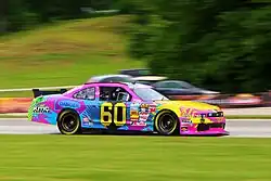 However, he left open the possibility of running occasional Truck Series events, and expressed a desire to compete in the Daytona 500.[44] On September 23, 2015, Pastrana announced he would make his comeback to NASCAR, signing a one-race deal with NTS Motorsports to race the No. 31 Chevrolet in the Truck Series race at Las Vegas on October 3.[45] After qualifying 17th, Pastrana finished sixteenth, two laps behind race winner John Wes Townley.[46] He returned to the Truck Series in 2017, driving the No. 45 Chevrolet for Niece Motorsports at Las Vegas.[47]